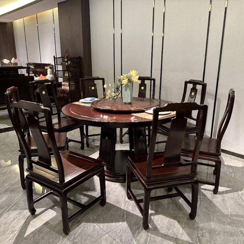 Anda dapat yakin untuk membeli Set Meja Makan Bulat Asia dari pabrik kami. Kayu eboni pilihan, kayu keras, tekstur halus, memancarkan kilau yang dalam dan misterius. Setiap potongan kayu dipilih dengan cermat untuk menghadirkan kualitas sempurna. Ini diproduksi dengan hati-hati oleh Pabrik Kayu Merah Chuantianjiang. Kayu eboni memberikan tekstur yang unik, dan rasa stabilitas serta keagungan muncul di wajahnya. Struktur tanggam dan duri mewarisi keahlian ribuan tahun, dan sangat kuat tanpa paku atau lem. Ini bukan hanya sebuah keterampilan, tetapi juga warisan budaya yang menunjukkan kearifan dan kecerdikan orang dahulu. Penggunaan struktur tanggam dan duri yang tradisional dan indah membuat struktur meja bundar stabil dan dapat digunakan dalam waktu lama.