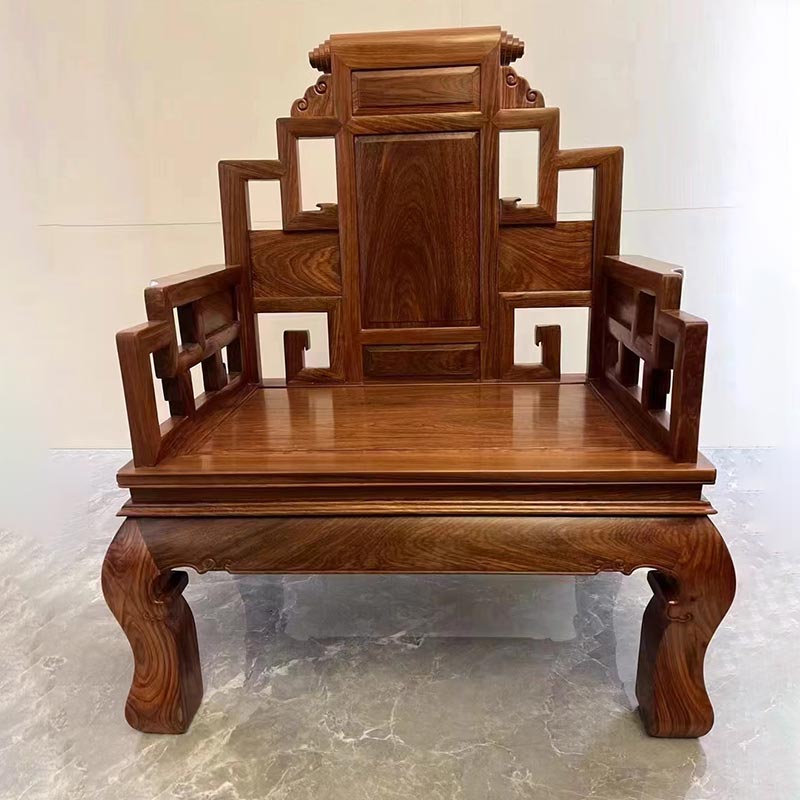 Kursi Kantor Klasik Tiongkok yang Melebar memiliki bentuk yang megah dan desain yang indah. Ibarat singgasana, memancarkan suasana megah dan mulia. Duduk di kursi, Anda bisa merasakan rasa hormat yang tak tertandingi. Ini bukan sekedar perabot, tapi juga simbol status. Ini memberi Anda tempat yang nyaman untuk beristirahat, dan juga menunjukkan selera dan status Anda. Pilih kursi ini, pilihlah kualitas terbaik dari Pabrik Kayu Merah Chuantianjiang, dan biarkan hidup Anda penuh martabat dan kemewahan. Tekstur alami kayu cendana merah berbuah besar seperti awan dan air yang mengalir, serta warnanya yang hangat dan lembut. Bentuknya yang megah, sandaran yang tinggi, dan sandaran tangan yang lebar seolah mencerminkan keagungan seorang raja.